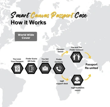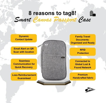 - [Global Leader in Smart Passport Cases] tag8's Smart Passport Case is feature-rich and designed for your peace of mind. Secure your passport with our RFID-blocking and BLE tracker-enabled case which has loss recovery service included with 90% success rate, within 8 hours!