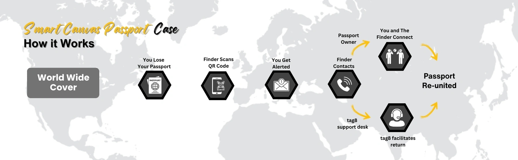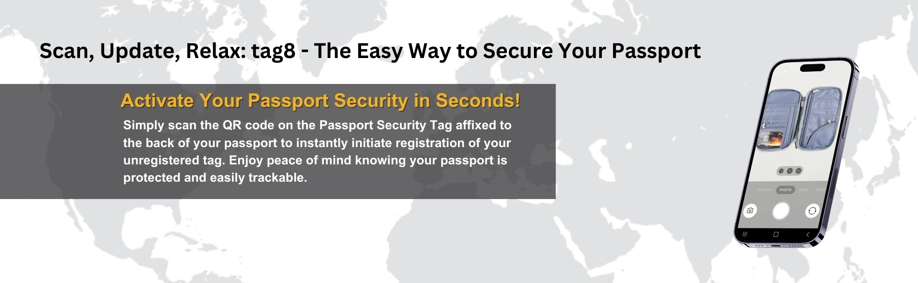 - [Global Coverage, Zero Fees] Enjoy worldwide coverage with tag8 products, No subscription-Fee. Valid for all nationalities travelling anywhere in the world. Truly Global Passport protection Service