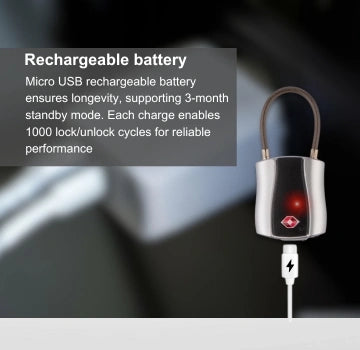 - [Long-Lasting Rechargeable Battery] Powered by a micro USB rechargeable battery, this padlock offers up to 3 months of standby time and 1,000 lock/unlock cycles per charge for long-lasting performance