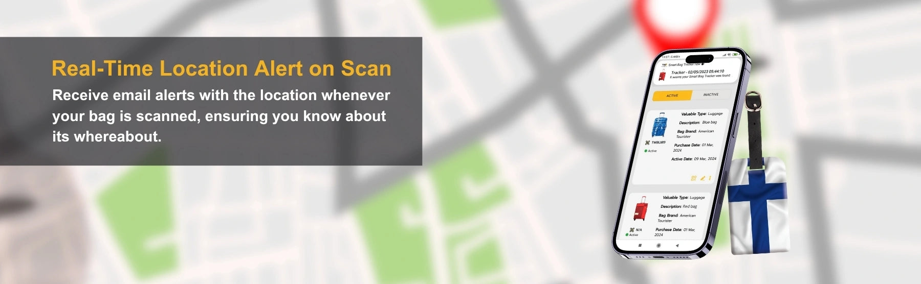 - [Instant Alerts of misplaced bags] Receive real-time email alerts with your bag's location as soon as it is scanned by Finder, so you always know where it is. Also, receive alerts when Lost luggage handlers scan you bag at 2800+ Airports