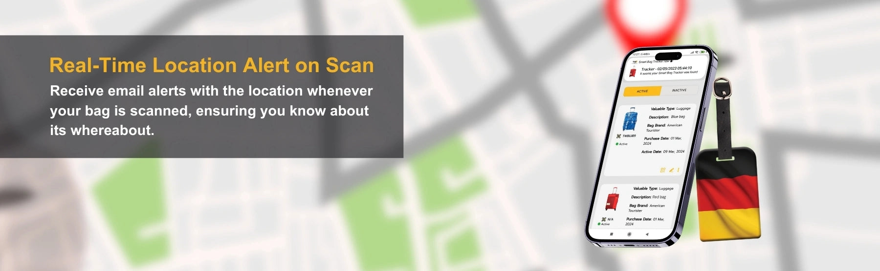 - [Instant Alerts of misplaced bags] Receive real-time email alerts with your bag's location as soon as it is scanned by Finder, so you always know where it is. Also, receive alerts when Lost luggage handlers scan you bag at 2800+ Airports