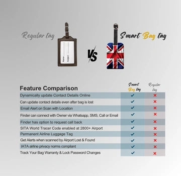 - [Stay in Control of your bags] Update your contact details online anytime, even after your bag is lost, for peace of mind. Relevant both in and outside airline systems, perfect for local travels, and smarter than a name tag