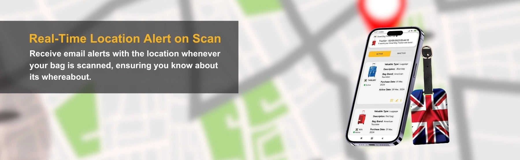 - [Instant Alerts of misplaced bags] Receive real-time email alerts with your bag's location as soon as it is scanned by Finder, so you always know where it is. Also, receive alerts when Lost luggage handlers scan you bag at 2800+ Airports