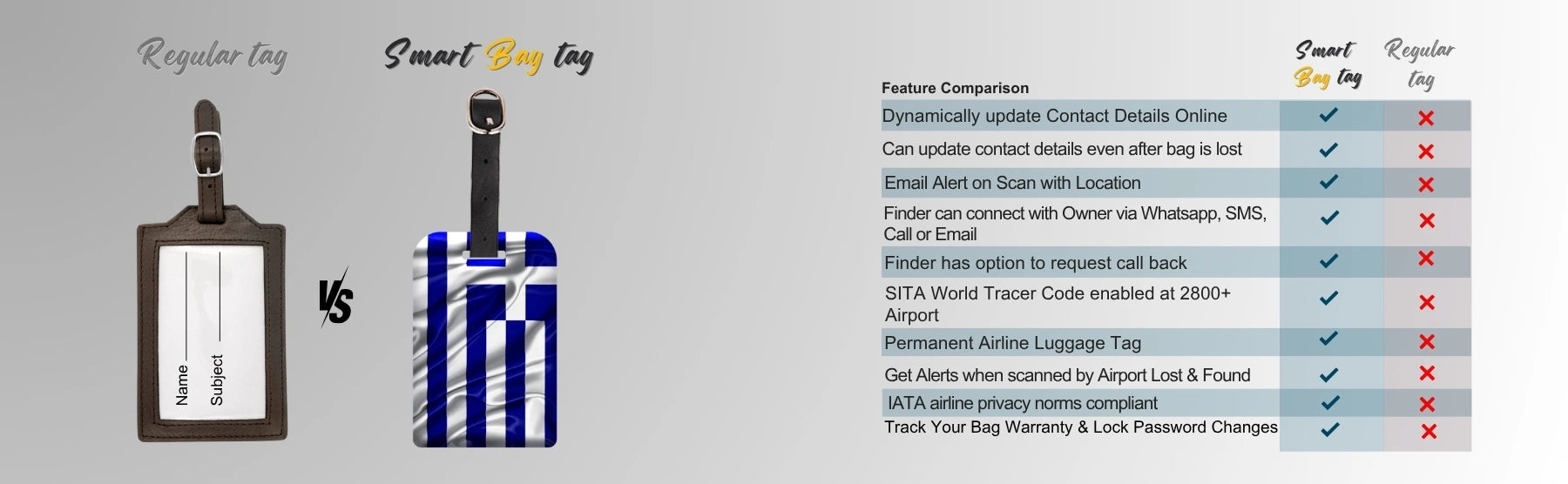 - [Stay in Control of your bags] Update your contact details online anytime, even after your bag is lost, for peace of mind. Relevant both in and outside airline systems, perfect for local travels, and smarter than a name tag