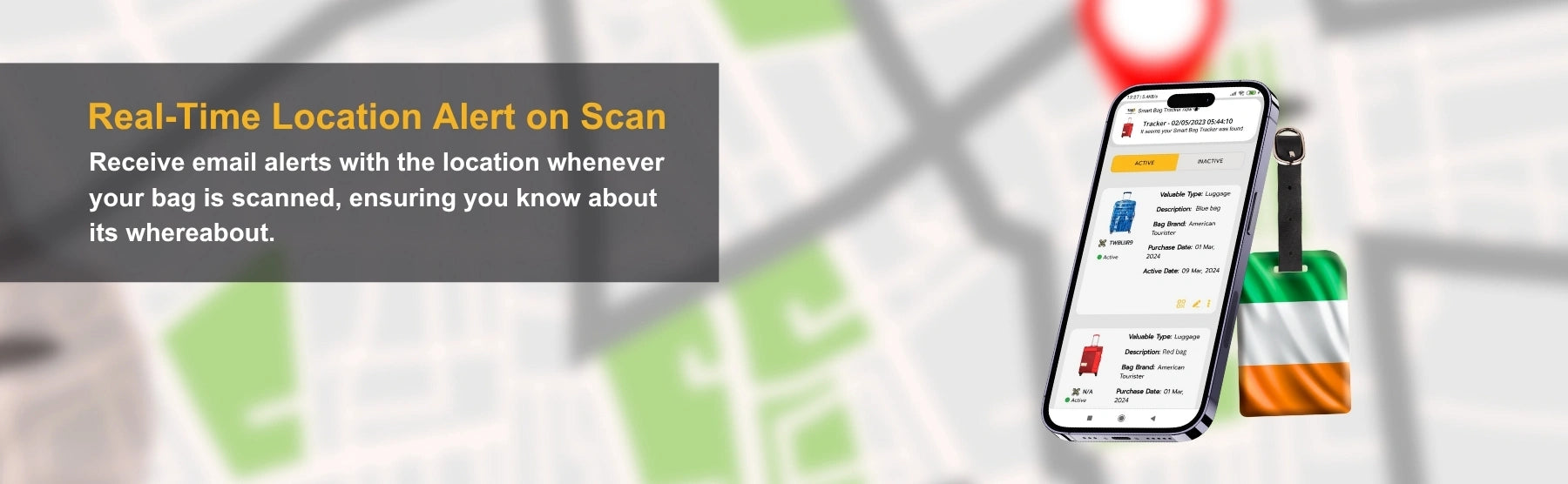 - [Instant Alerts of misplaced bags] Receive real-time email alerts with your bag's location as soon as it is scanned by Finder, so you always know where it is. Also, receive alerts when Lost luggage handlers scan you bag at 2800+ Airports
