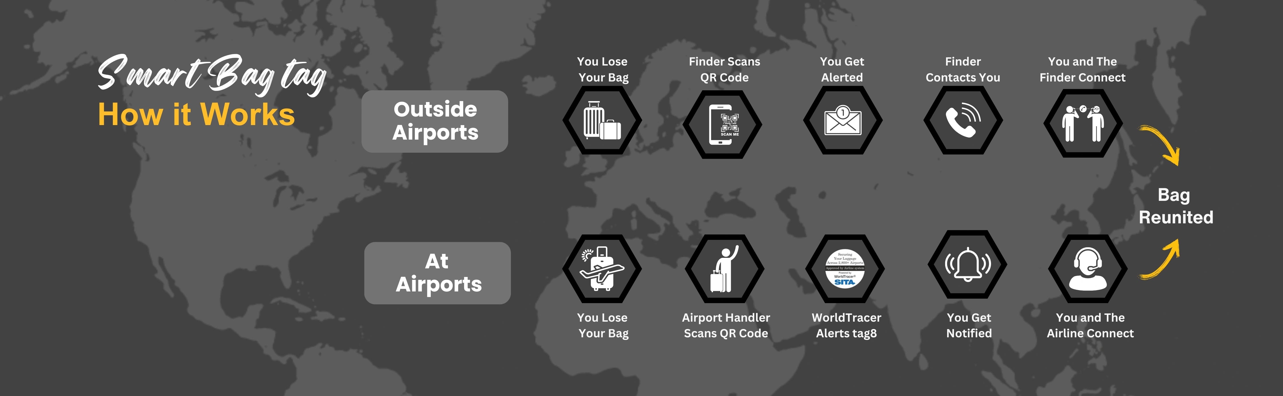 - [Stay in Control of your bags] Update your contact details online anytime, even after your bag is lost, for peace of mind. Relevant both in and outside airline systems, perfect for local travels, and smarter than a name tag