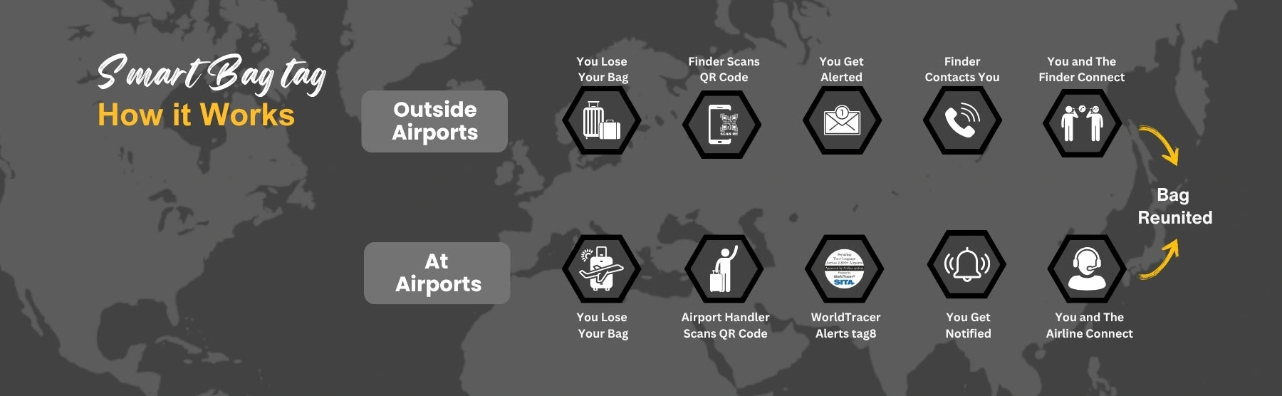 - [Stay in Control of your bags] Update your contact details online anytime, even after your bag is lost, for peace of mind. Relevant both in and outside airline systems, perfect for local travels, and smarter than a name tag
