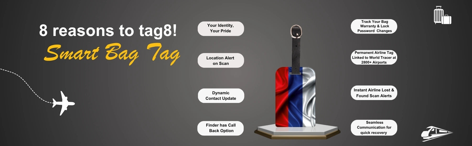 - [Stay in Control of your bags] Update your contact details online anytime, even after your bag is lost, for peace of mind. Relevant both in and outside airline systems, perfect for local travels, and smarter than a name tag