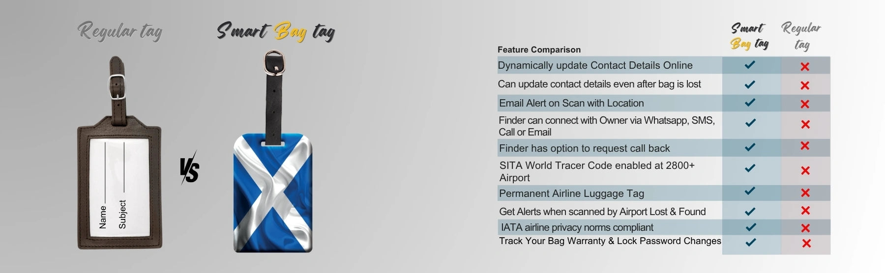 - [Stay in Control of your bags] Update your contact details online anytime, even after your bag is lost, for peace of mind. Relevant both in and outside airline systems, perfect for local travels, and smarter than a name tag