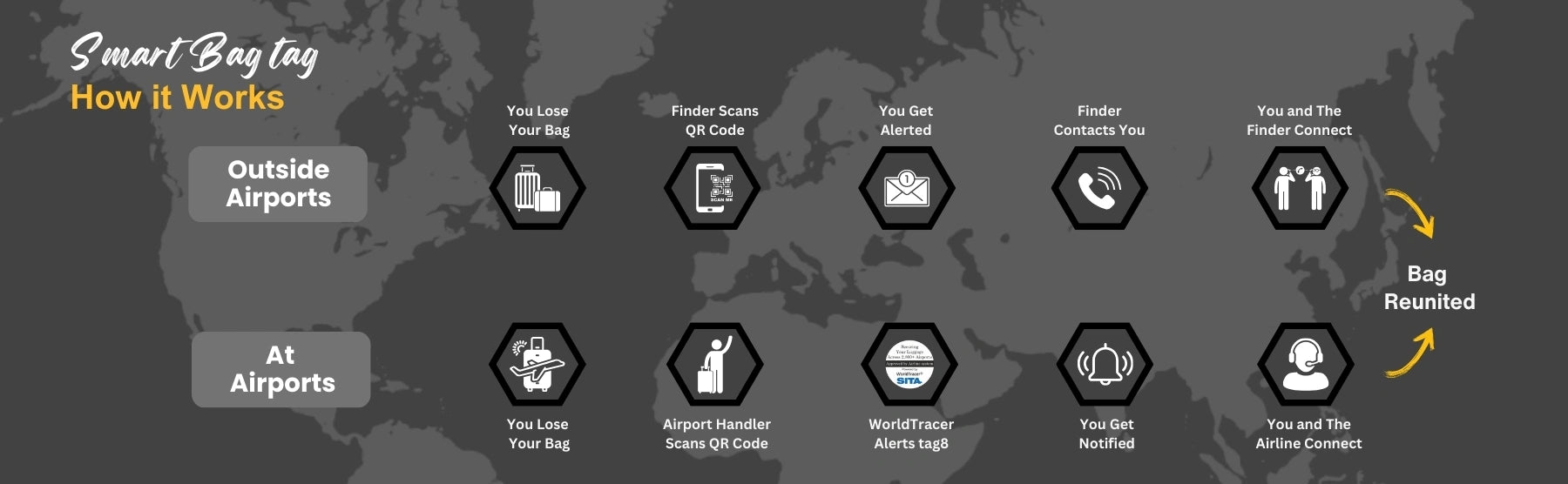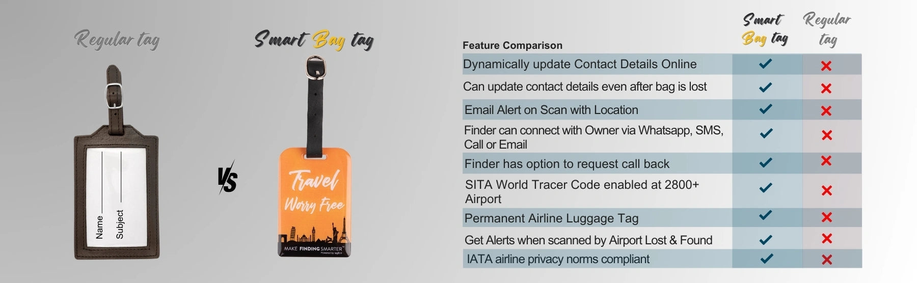- [Stay in Control of your bags] Update your contact details online anytime, even after your bag is lost, for peace of mind. Relevant both in and outside airline systems, perfect for local travels, and smarter than a name tag
